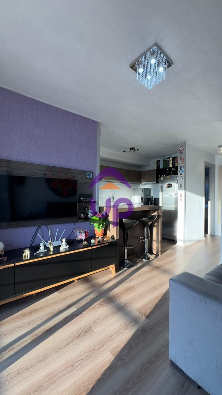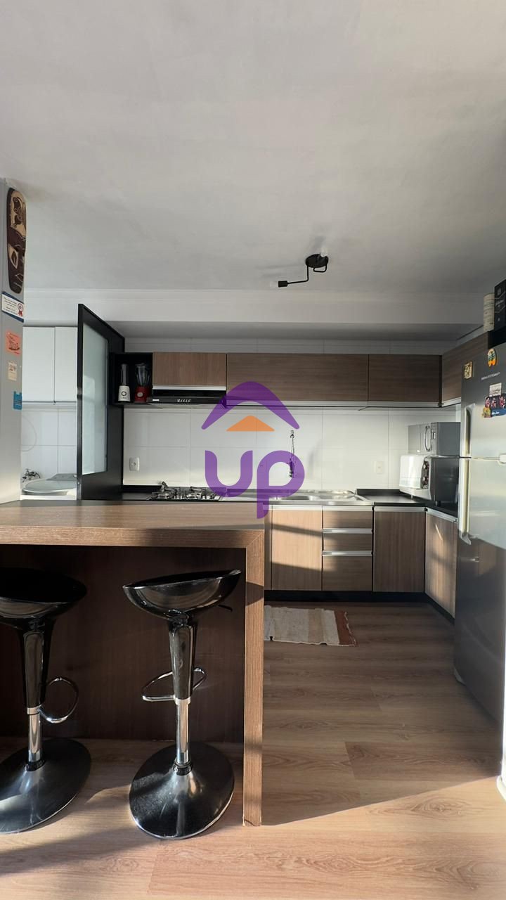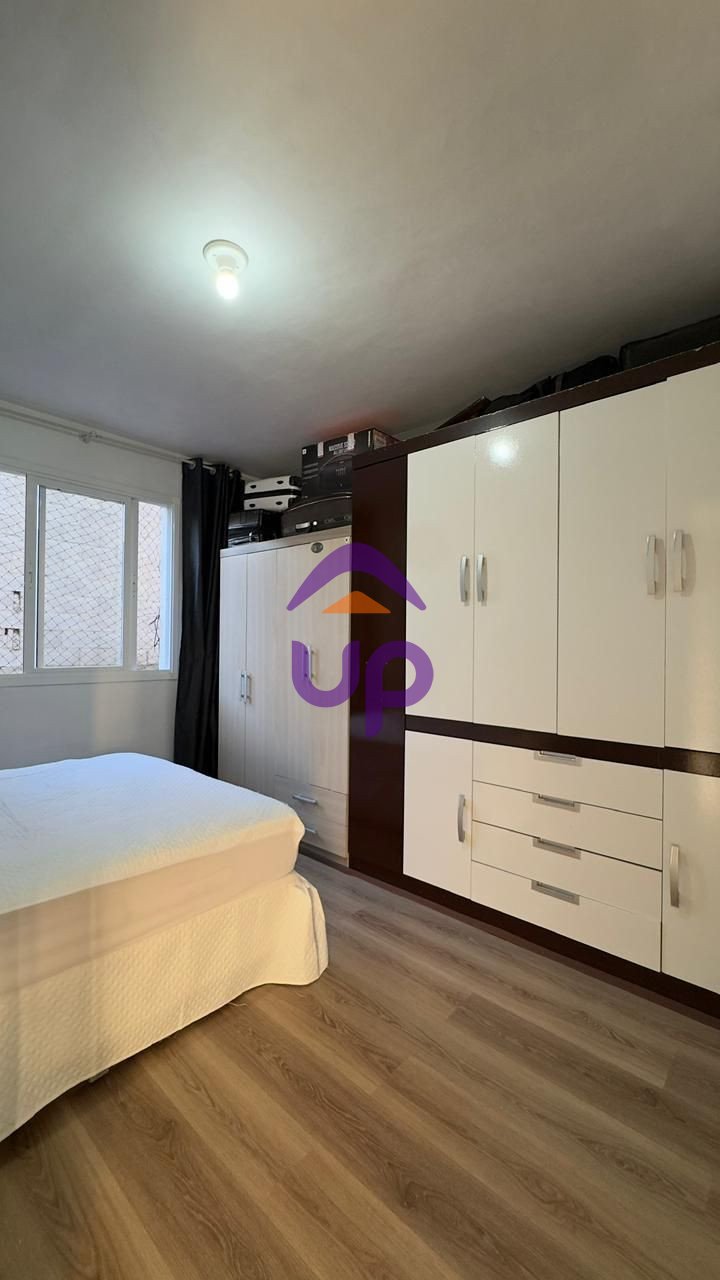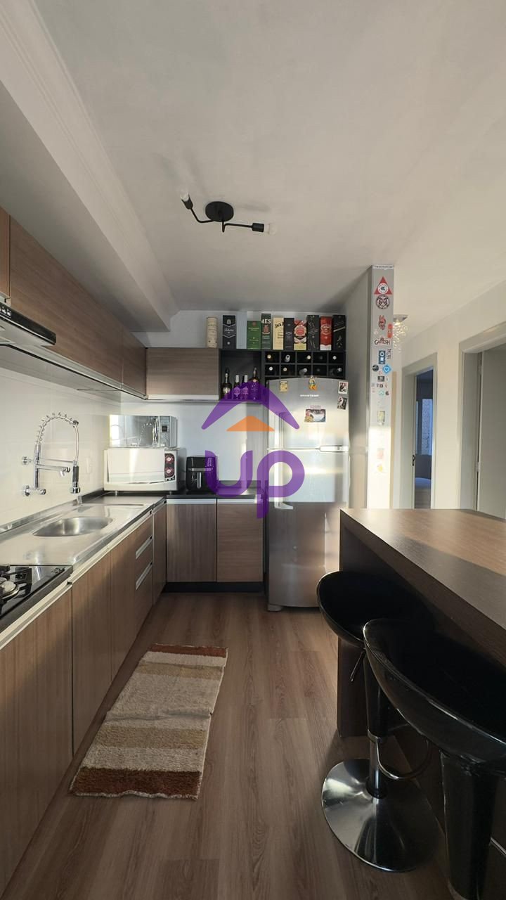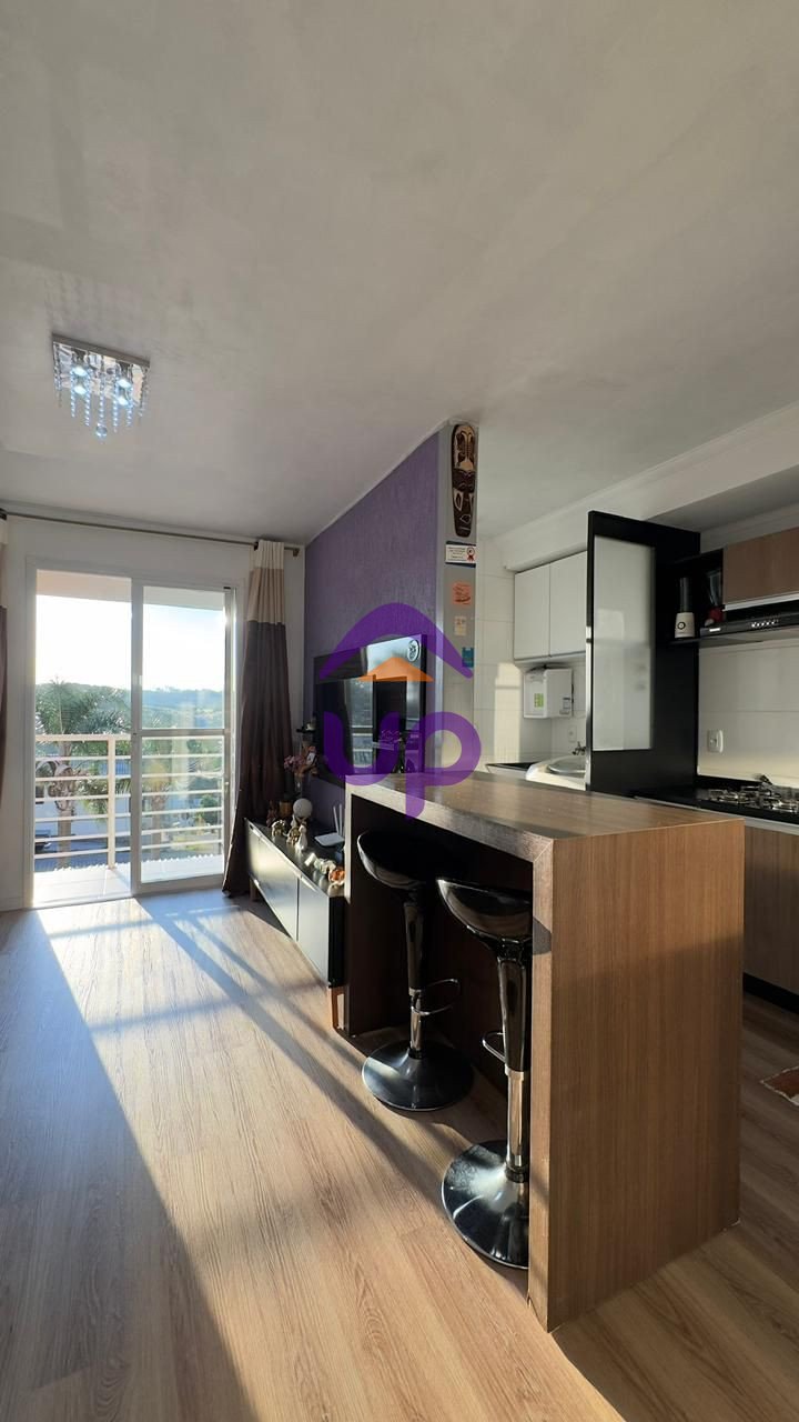 Up Imóveis vende Apartamento semimobiliado, localizado no bairro Desvio Rizzo, de 2 dormitórios, cozinha, sala de estar e jantar com sacada, banheiro social, área de serviço, piso vinílico, churrasqueira, frente oeste, 1 vaga de garagem, localização privilegiada. Valor do condomínio de aproximadamente R$250,00.